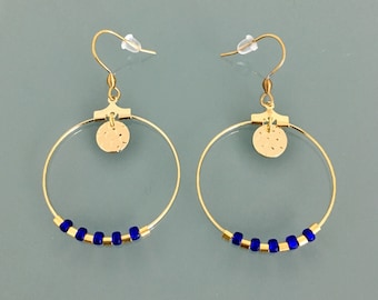 Gold ethnic creoles and miyuki pearls, women's jewel, golden creoles, gilded jewelery, jewelry gifts, women's gift, ethnic women's jewel
